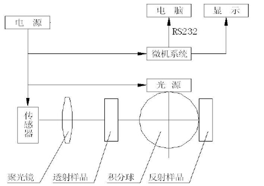 WSF 分光測色儀是以色度學理論為基礎,對物體色進行光譜光度測量的儀器,由光源、積分球、分光器、探測器及數據處理系統等組成,為了方便用戶得到直觀的結果,儀器可顯示被測物體色的反(透)射比,也可通過與電腦的通訊給出它們的光譜曲線。