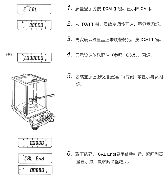 10.2.14 使用外部砝碼的靈敏度確認(rèn)(出廠時(shí)未經(jīng)設(shè)定)