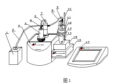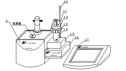 如圖:儀器由控制單元(17)、容量滴定單元(3)、永停測(cè)量單元(16)三部分組成。其中,可由PC機(jī)(需安裝本廠ZDJ-5型自動(dòng)滴定儀控制軟件)代替控制單元進(jìn)行滴定控制。