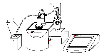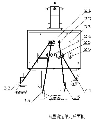 其中控制單元“滴定接口”(18)接容量滴定單元“滴定接口/RS232”(21);控制單元“測(cè)量接口(19)”接永停測(cè)量單元“測(cè)量接口/RS232”(32)。