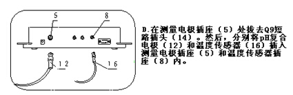 a 將pH 復合電極插入儀器的測量電極插座內,并將該電極用蒸餾水清洗干凈,放入pH標準緩沖溶液A中(規定的五種pH標準緩沖溶液中的任意一種)。