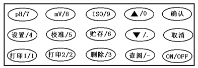 此時,pH、mV和校準鍵均有效。如按下其中某一鍵,則儀器進入相應的工作狀態。