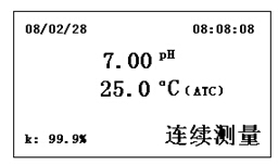 按下“ON/OFF”鍵,儀器自動進入pH測量狀態。儀器顯示如下界面: