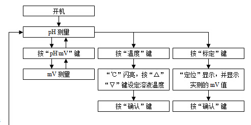 (1) 打開電源開關(guān),儀器進入pH測量狀態(tài);按“pH\mV”鍵,使儀器進入mV測量即可。