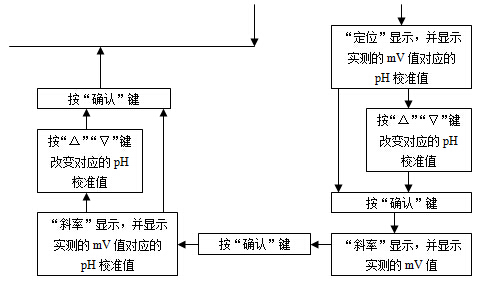 e) 把用蒸餾水或去離子水清洗過的電極插入pH=6.86pH(或pH=4.00;或pH=9.18)的標準緩沖溶液中,按“標定”鍵,此時顯示實測的mV值,待讀數(shù)穩(wěn)定后按“確認”鍵(此時顯示實測的mV值對應的該溫度下標準緩沖溶液的標稱值),然后再按“確認”鍵,儀器轉(zhuǎn)入“斜率”標定狀態(tài)。溶液的pH值與溫度關(guān)系對照表見附錄;