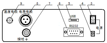 (7)接地端;(8)電導電極插座;(9)溫度電極插座。