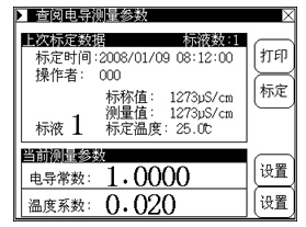e. 按“設置”鍵選擇“標定電極常數”項并確認后進入電極常數標定狀態,顯示如圖;