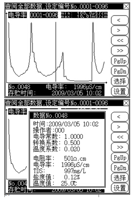 按“查閱”鍵可查閱電導測量參數等,具體參見查閱電導測量參數章節。
