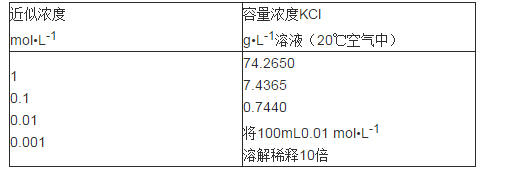 (1)KCl應采用優級純(GR),且需在220~240℃下烘干2小時,然后放入干燥器中冷卻至室溫。