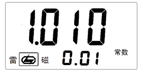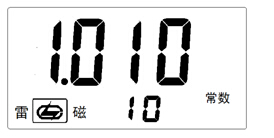 按“電極常數▽”或“電極常數△”,電極常數的顯示在10、1、0.1、0.01之間轉換,如果電導電極標貼的電極常數為“10.10”,則選擇“10”并按“確認”鍵;再按“常數數值▽”或“常數數值△”,使常數數值顯示“1.010”,按“確認”鍵;此時完成電極常數及數值的設置(電極常數為上下二組數值的乘積)。儀器顯示如圖: