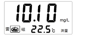 如果采用溫度傳感器,儀器接上電導電極、溫度電極,用蒸餾水清洗電極頭部,再用被測溶液清洗一次,將溫度電極、電導電極浸入被測溶液中,用玻璃棒攪拌溶液使溶液均勻,在顯示屏上讀取溶液的TDS值。例如:溶液溫度為22.5℃,TDS值為10.10mg/L,則儀器顯示如圖: