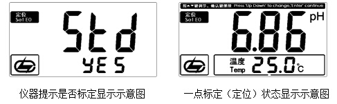 d) 如果用戶使用的是其他非常規(guī)標(biāo)準(zhǔn)緩沖溶液,則首先需要按“定位△”或“定位▽”鍵調(diào)節(jié)顯示值,使pH顯示為該溫度下標(biāo)準(zhǔn)溶液的pH值,然后按“確認(rèn)”鍵,完成標(biāo)定。