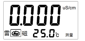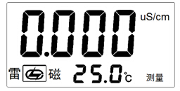 經過上述4.3~4.4的設置,儀器可用來測量被測溶液,按“測量”鍵,使儀器進入電導率測量狀態。儀器顯示如圖: