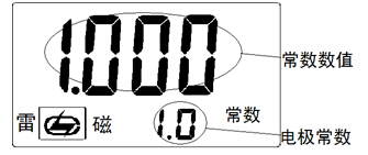 按“電極常數”鍵或“常數調節”鍵,儀器進入電極常數設置狀態,儀器顯示如圖: