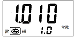 按“電極常數▽”或“電極常數△”,電極常數的顯示在10、1、0.1、0.01之間轉換,如果電導電極標貼的電極常數為“1.010”,則選擇“1”并按“確認”鍵;再按“常數數值▽”或“常數數值△”,使常數數值顯示“1.010”,按“確認”鍵;此時完成電極常數及數值的設置(電極常數為上下二組數值的乘積)。儀器顯示如圖: