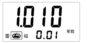 按“電極常數▽”或“電極常數△”,電極常數的顯示在10、1、0.1、0.01之間轉換,如果電導電極標貼的電極常數為“10.10”,則選擇“10”并按“確認”鍵;再按“常數數值▽”或“常數數值△”,使常數數值顯示“1.010”,按“確認”鍵;此時完成電極常數及數值的設置(電極常數為上下二組數值的乘積)。儀器顯示如圖: