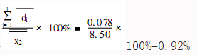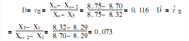 按大小順序排列觀測值X1≤X2…≤X2計算統計量。設定置信度α= 95%,n= 25時, 查表得D0.95=0.443,得出D>D’,D<D0.95(25),故判斷無異常數據。
