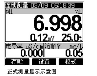 這是最常使用的一種測量模式,開始測量后,儀器始終連續(xù)測量計(jì)算和顯示測量結(jié)果,用戶在測量期間可以查閱測量參數(shù)、標(biāo)定電極、存貯或打印測量結(jié)果等等,測量結(jié)束,用戶按“取消”鍵并“確認(rèn)”后退出測量模式。