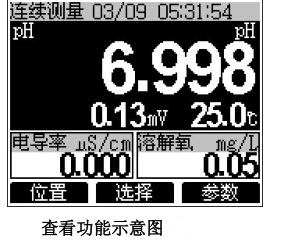 重復(fù)按“選擇”鍵,則可以依次選擇不同的窗口;按“位置”鍵可以直接將選擇的窗口切換到第一窗口位置;重復(fù)按“參數(shù)”鍵,可以直接查看當(dāng)前模塊下的其他測量參數(shù),比如,當(dāng)前測量窗口為電導(dǎo)測量模塊,當(dāng)前測量參數(shù)為電導(dǎo)率,則重復(fù)按“參數(shù)”鍵時,儀器會在 TDS、鹽度、電阻率、電導(dǎo)率之間來回切換(注意:本方法不適用于離子測量模塊)。查看結(jié)束,如果用戶在幾秒鐘里面沒有繼續(xù)按鍵,儀器會自動退出查看狀態(tài)。
