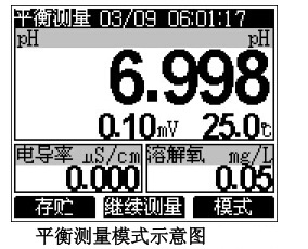 這是儀器支持的另一種測量模式,用戶首先應(yīng)該設(shè)置好平衡條件(具體操作見設(shè)置平衡條件章節(jié)),開始測量后,儀器自動測量、計(jì)算并顯示測量結(jié)果,一旦測量符合設(shè)定好的平衡條件,本次測量即結(jié)束。在測量過程中,用戶可以查閱測量參數(shù)、標(biāo)定電極等。測量結(jié)束后,用戶可以存貯、打印測量結(jié)果;按“取消”鍵退出測量狀態(tài),或者選擇按“繼續(xù)測量”鍵開始下一次測量。