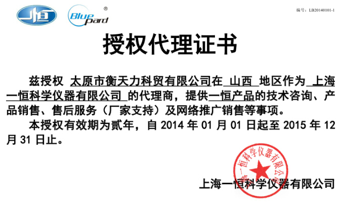 上海一恒已在多地有授權代理商,太原衡天力科貿公司是一恒在山西的代理商,授權書如下;