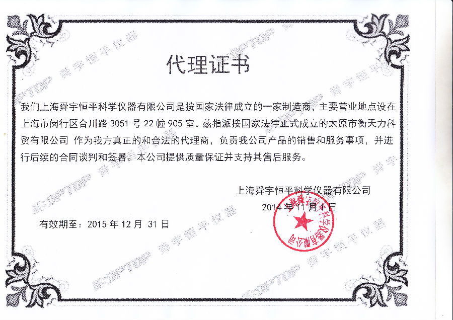 電子天平是基本的實驗分析儀器,應用廣泛,銷售廠家也很多。在購買時請選擇售后維修服務好的生產廠家和正規代理商。太原衡天力是島津的正規授權代理商,證書如下: