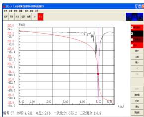 取出加100ml水搖勻,立即用硫代硫酸鈉標準滴定溶液(0.005696mol/L)滴定。使用鉑電極做指示電極,212-01參比電極。儀器自動判斷終點。