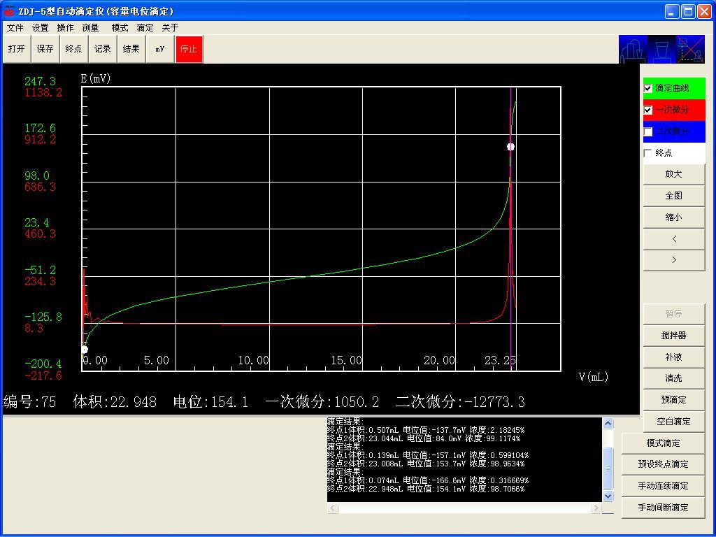 終點電位:154.1mv 終點體積:22.948ml