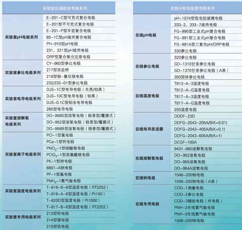 上海雷磁所有電極一覽表