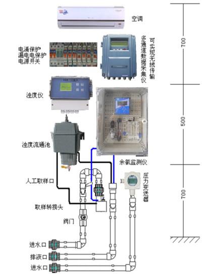 樓宇水箱水質監測系統解決方案主要根據《GB/T17051-1997二次供水設施衛生規范》及地方政府惠民提出的要求形成。本監測系統由站房、余氯監測儀、濁度儀、PH變送器、電導率儀監測儀及數據采集及輔助設施組成,能自動連續或間斷監測水箱的濁度、pH值、余氯、電導率值。結合社區需要可以將監測信息無線傳輸到終端設備。對于保證高層樓宇社區或集中使用二次供水的區域的用水安全具有重要意義。