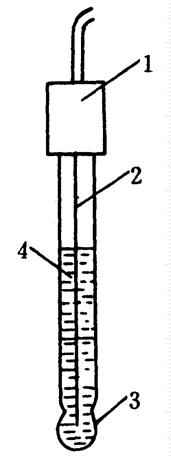 1—絕緣套;2—Ag-AgCl電極;3—玻璃膜;4—內(nèi)部緩沖液