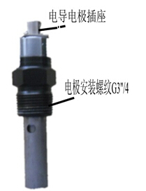 4. 將電極連線一頭插入鈦合金測量電極,另一頭連接到電導率儀。
