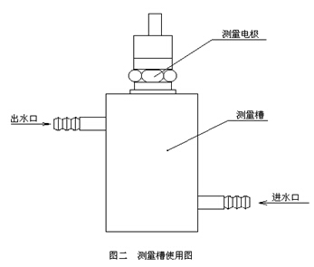 2. 將電極旋入測量槽,按圖二所示連接進出水管。