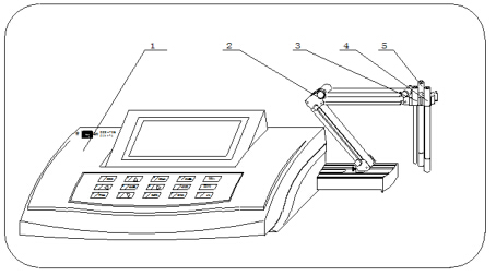 儀器由電子單元和電極系統組成,電極系統由離子測量電極、溫度測量電極構成。出廠時,儀器配置有相關的測量電極,用戶可以事先詢問公司銷售部門,了解相關信息。通常離子測量電極配有 E-201-C 型復合電極,允許測量 pH,溫度測量電極配有 T-818-B-6 型溫度電極(一切以實際的裝箱單為準。如果用戶需要測量其他離子,需用戶自己按照實際需要選購合適的離子選擇電極)。