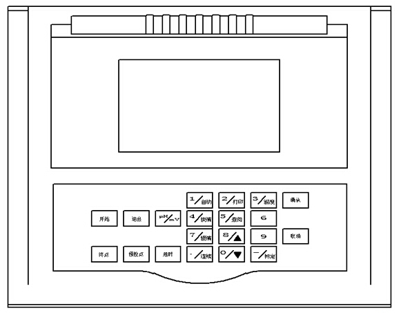 儀器的前面板示意圖如下圖所示。顯示器為240×128點(diǎn)陣的圖形點(diǎn)陣液晶。儀器共有20個按鍵,其中9個為復(fù)用鍵。可以看出有“-/標(biāo)定”鍵。