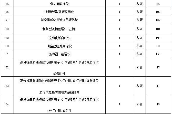 本次采購項目采購的儀器多為質譜、色譜等精密儀器設備,對儀器的核心技術要求較高,因此并對進口儀器做出特殊要求,鼓勵國產儀器和進口儀器共同競爭,以生產儀器的核心技術實力獲得科研機構的青睞。