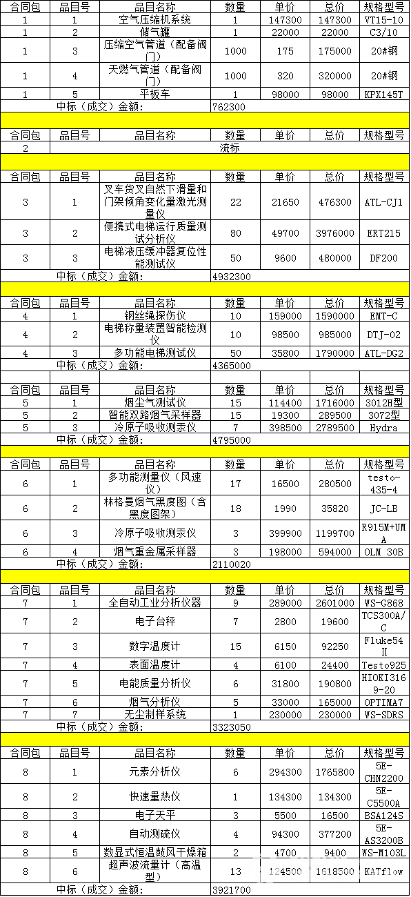 此次元素分析儀等儀器設備的采購有利于加強特檢院職能建設,能為全省特種設備安全運行和相關產業發展提供安全保障。以下為具體采購中標信息: