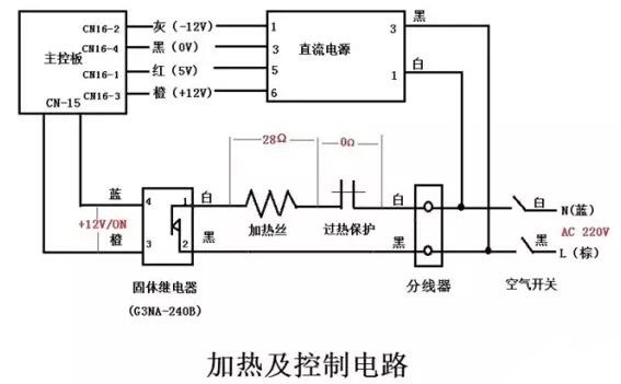 (2)加熱電路由:過熱保護器,加熱絲和固體繼電器(實際上是個開關)組成。