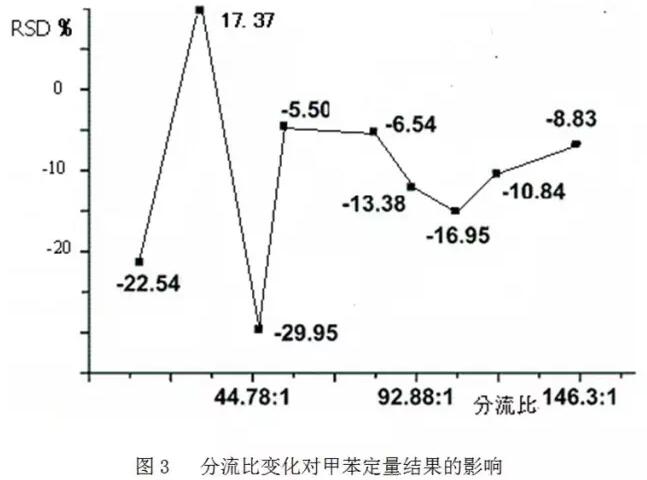 ③ 為減少分流比大小對分離測定的影響,在樣品濃度和柱容量允許的前提下,盡力選擇小點的分流比。