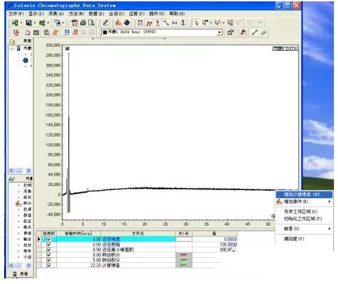 在色譜圖上22min處點右鍵,點增加事件,點檢測,點計算噪音。(藍色的標志是要點的標題)