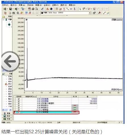 在色譜圖上52min處點右鍵,點增加計算噪音OFF。(藍色標志)