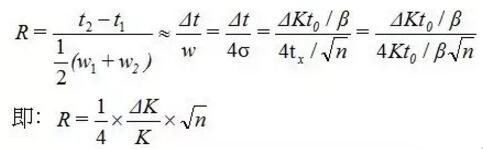色譜分離度又稱分辨率,用來表征兩個相鄰色譜峰的分離程度,用R表示。R等于相鄰色譜峰保留時間之差與兩色譜峰峰寬均值之比。計算公式為: