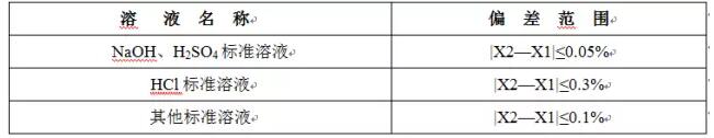 (5)滴定液的濃度標定值應與名義值一致,若不一致其最大與最小標定值在名義值的±5%之間;