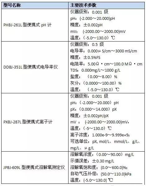 我們本次推出了四款便攜式引領(lǐng)版系列儀表,分別是PHBJ-261L型便攜式pH計、DDBJ-351L型便攜式電導(dǎo)率、JPBJ-609L型便攜式溶解氧測定儀、PXBJ-287L型便攜式離子計。