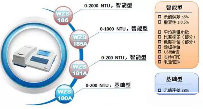 濁度是一種光學(xué)效應(yīng),它表現(xiàn)出光線透過水層時(shí)受到的阻礙的程度。濁度是天然水和飲用水等水質(zhì)中的一項(xiàng)重要的水質(zhì)指標(biāo)。上海儀電科學(xué)儀器股份有限公司推出的濁度儀系列產(chǎn)品,根據(jù)散射-透射光測(cè)量原理進(jìn)行設(shè)計(jì),采用LED穩(wěn)定的光源,分別符合ISO7027標(biāo)準(zhǔn);具有自動(dòng)色度補(bǔ)償和量程自動(dòng)切換功能;多種測(cè)量模式,滿足不同特性樣品的測(cè)量和精度要求。目前濁度儀的型號(hào)主要有WZS-186型、WZS-185A型、WZS-181A和WZS-180A型。