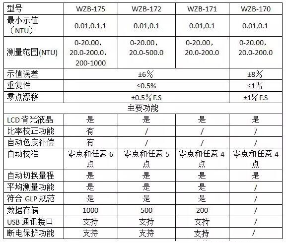 濁度是一種光學(xué)效應(yīng),它表現(xiàn)出光線透過(guò)水層時(shí)受到的阻礙的程度。濁度是天然水和飲用水等水質(zhì)中的一項(xiàng)重要的水質(zhì)指標(biāo),也是供水水質(zhì)生產(chǎn)運(yùn)行、輸送等評(píng)估、控制水質(zhì)的重要技術(shù)參數(shù)。濁度由濁度儀檢測(cè)(包含實(shí)驗(yàn)室和便攜式濁度計(jì)),上海儀電科學(xué)儀器股份有限公司推出的便攜式濁度儀系列產(chǎn)品,根據(jù)散射-透射光測(cè)量原理進(jìn)行設(shè)計(jì),采用LED穩(wěn)定的光源,分別符合ISO7027標(biāo)準(zhǔn);具有自動(dòng)色度補(bǔ)償和量程自動(dòng)切換功能;多種測(cè)量模式,滿(mǎn)足不同特性樣品的測(cè)量和精度要求。目前便攜式濁度儀的型號(hào)主要有WZB-175型、WZB-172型、WZB-171和WZB-170型。