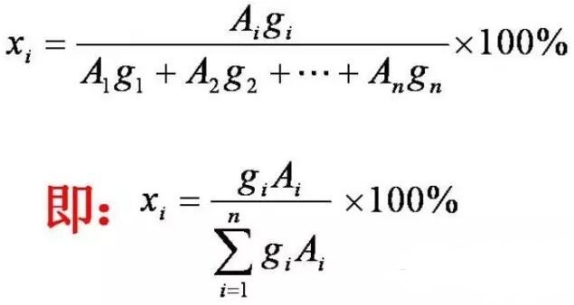 分子,就是外標法下待測組分的濃度;分母則是所有組分外標法測定濃度之和。利用濃度和,消除了進樣量體積錯誤導致的誤差。