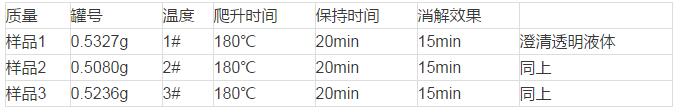 注:消解液為10mL優級純硝酸,功率根據消解罐的數量自動調整確定