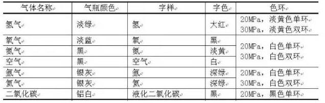 按照國家標準GB7144,各種鋼瓶的規定應該是這樣的: