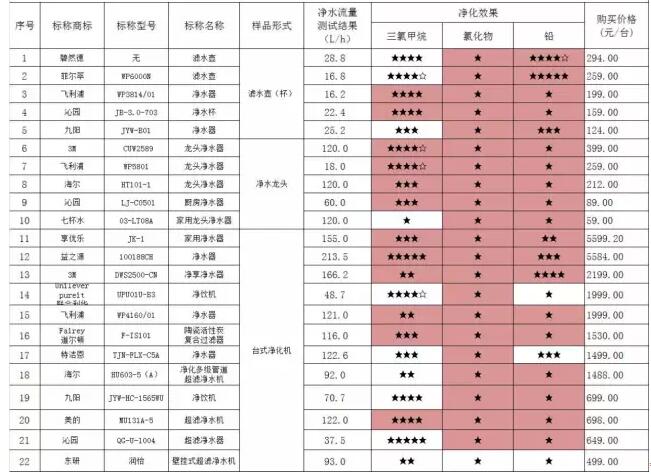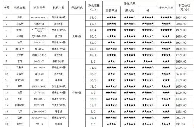 注:此次參加測試的40款凈水器產(chǎn)品均為合格產(chǎn)品。